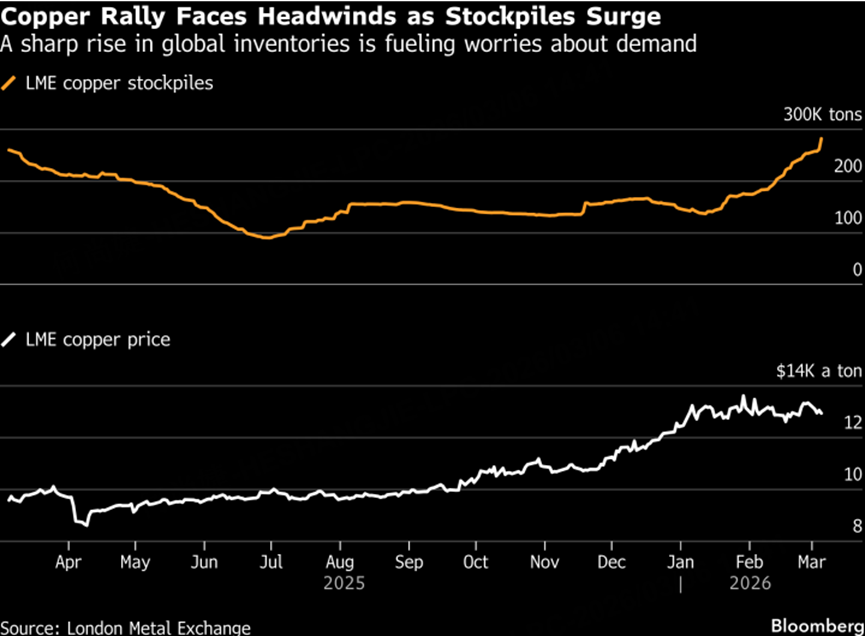 Demand has also started to weaken. China accounts for roughly half of global copper consumption, but many copper fabricators have recently reported a noticeable drop in orders. Some companies have seen first-quarter orders decline by around 10% to 20%. With copper prices near record highs, many firms are maintaining only minimal inventories, slowing their purchasing pace as high prices begin to suppress demand.