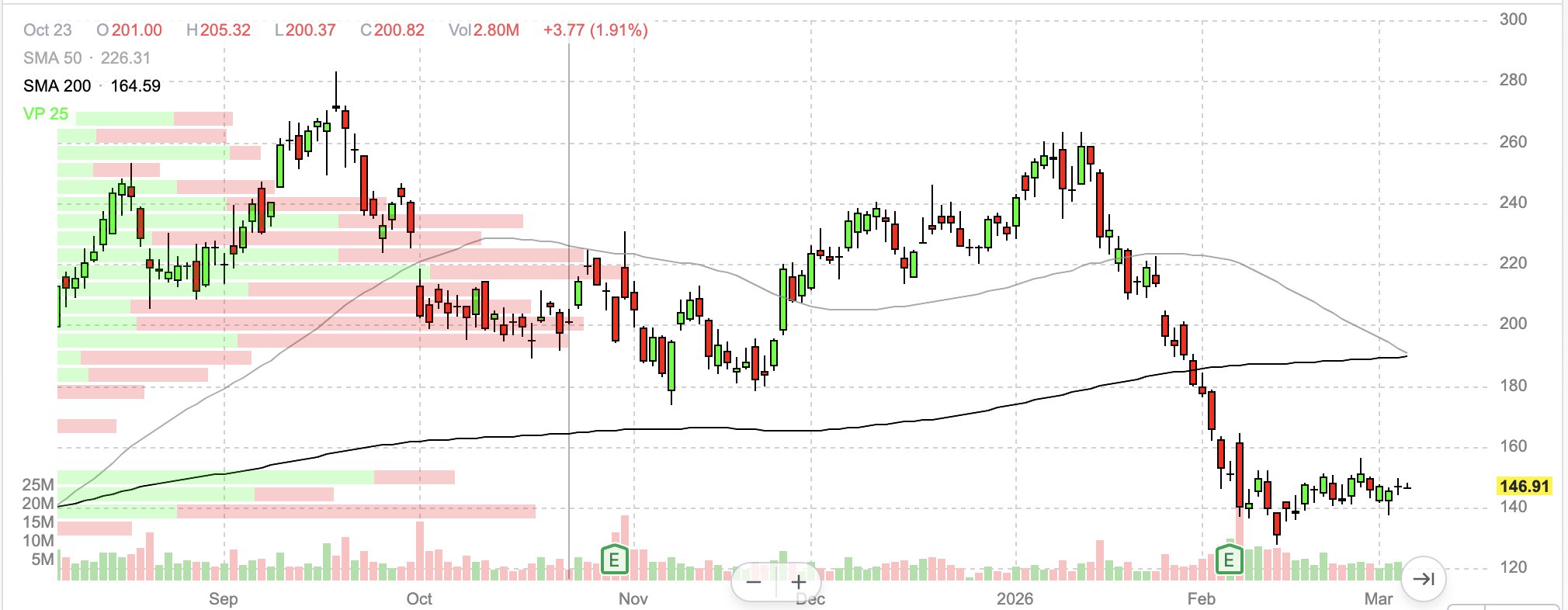 Chart looks good for a swing. Basing. Clear risk of a daily close under $140.