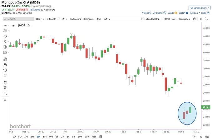 Nice bounce back day for MongoDB $MDB after one of its worst days in history earlier this week 📈📈