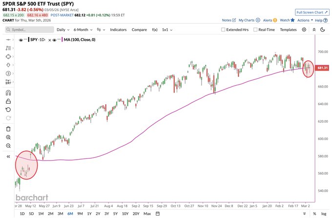 S&P 500 $SPY has now closed below its 100-day moving average in 2 of the last 3 trading days for the first time since May 🚨🚨🚨