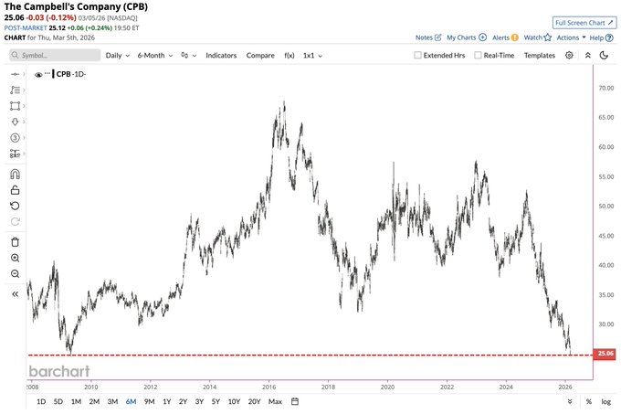 Campbell's Soup $CPB falls to its lowest price since the Global Financial Crisis 📉📉