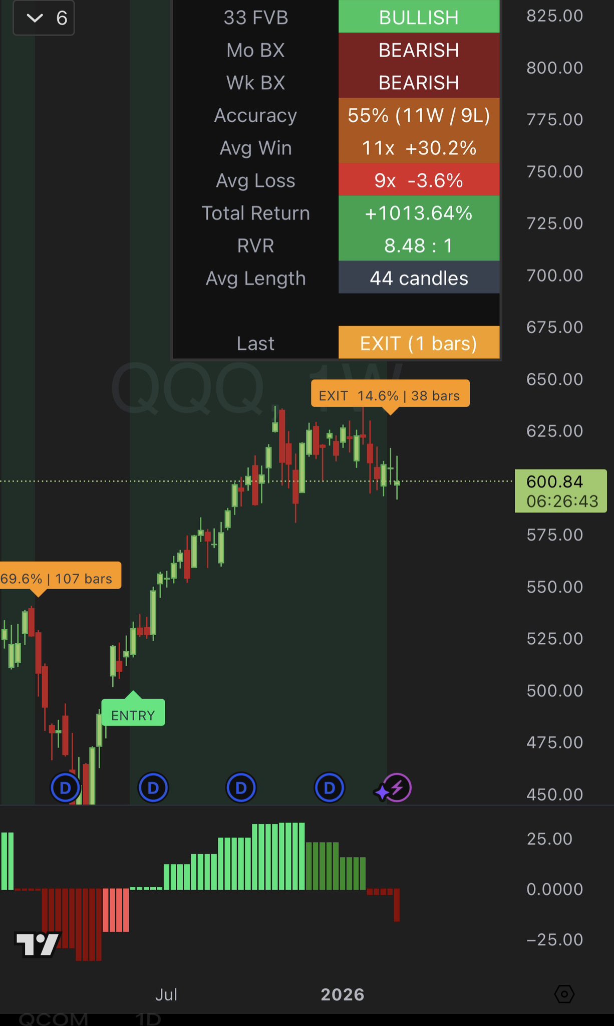 Price compression + a red Monthly BX is not strength.