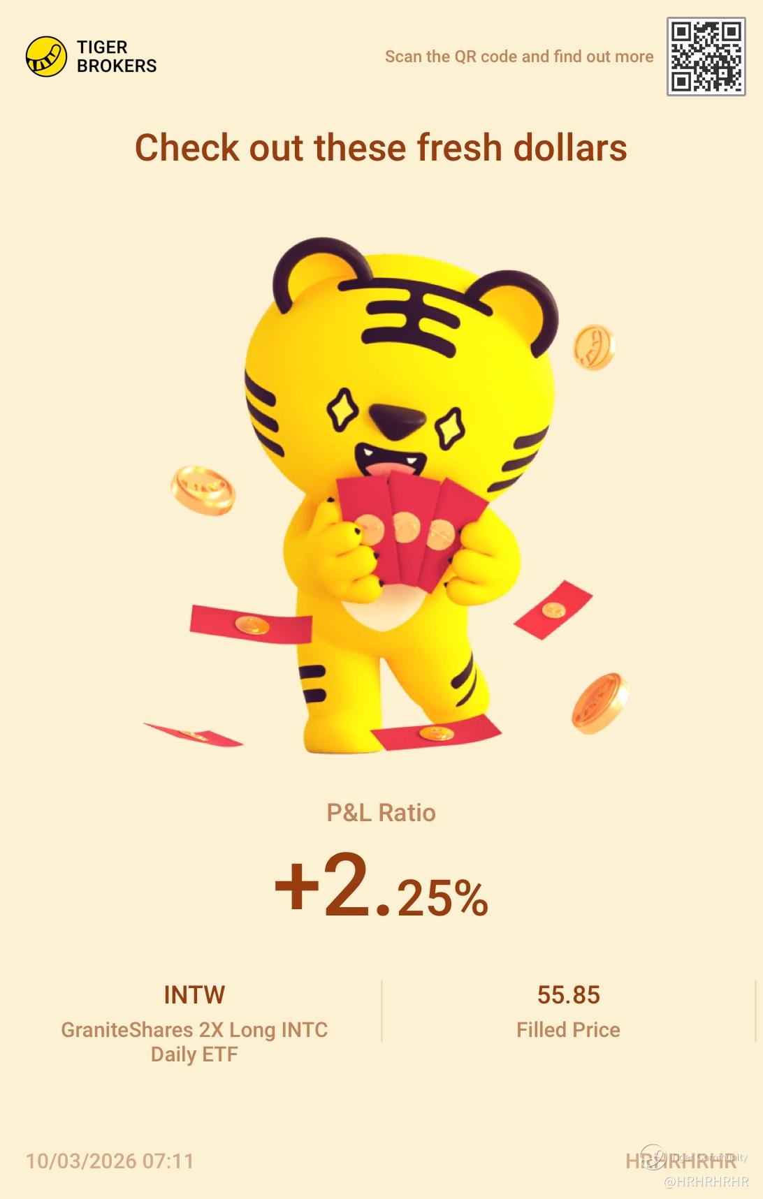 $GraniteShares 2X Long INTC Daily ETF(INTW)$ $Intel(INTC)$ Great reaction from INTL today, alongside the rest of the semiconductor stocks! 2nd trade of the week thanks for iran war!