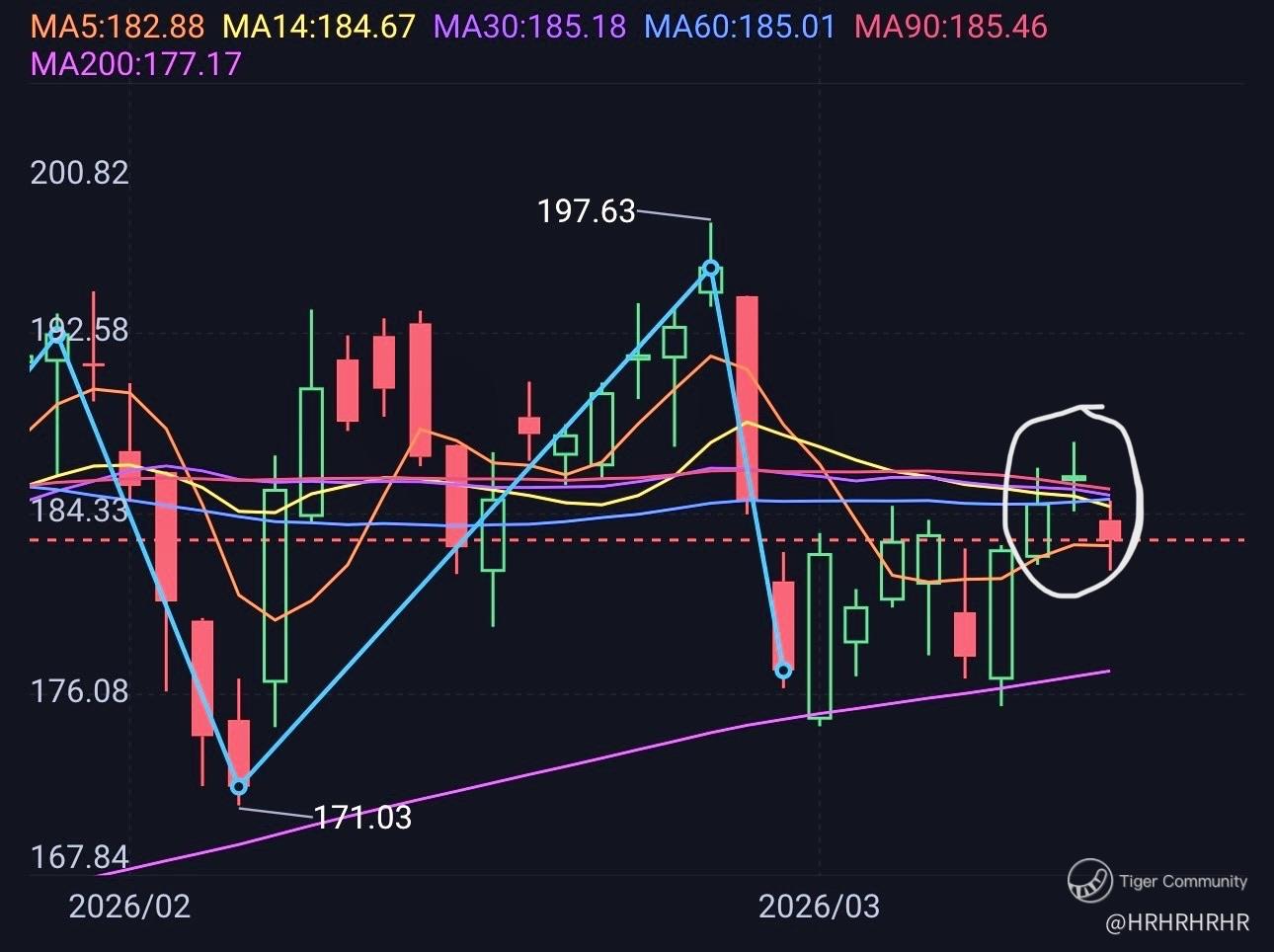 If tonight we see NVDA confirms losing today’s low, it may confirm the trigger of this Evening star candle formation. If we see a lower high and lower low confirmation, short-term it may confirm the idea of another pullback to next support level around $169~$171 area.