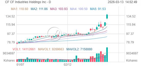 CF Industries Rockets +13.21%, Nears 52-Week High at $137.44