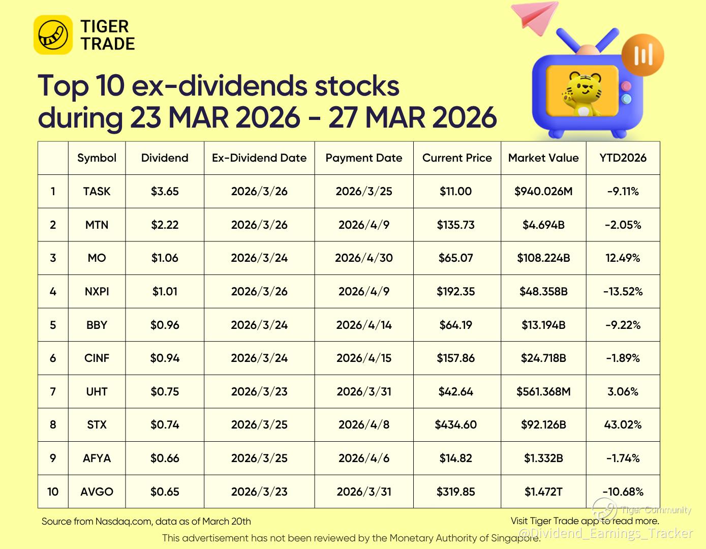 🎁Capturing Top 10 Ex_dividend: TASK, MTN, MO, NXPI, BBY...