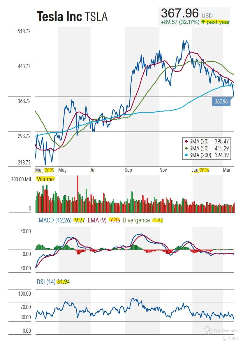 On Fri, 20 Mar 2026, TSLA ended the week at $367.96 /share.