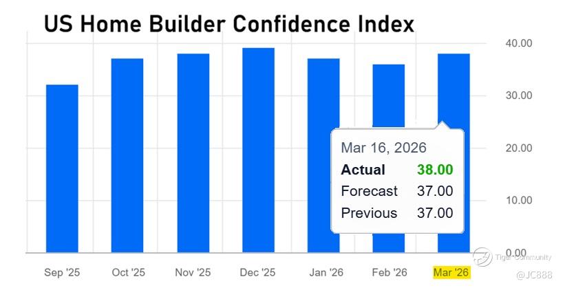 For March 2026, the NAHB/Wells Fargo Housing Market Index (HMI) rose slightly to 38, from an upwards revised 37 in February.