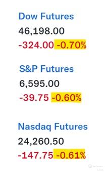 DJIA : -0.96% (−443.96 to 45,577.47).