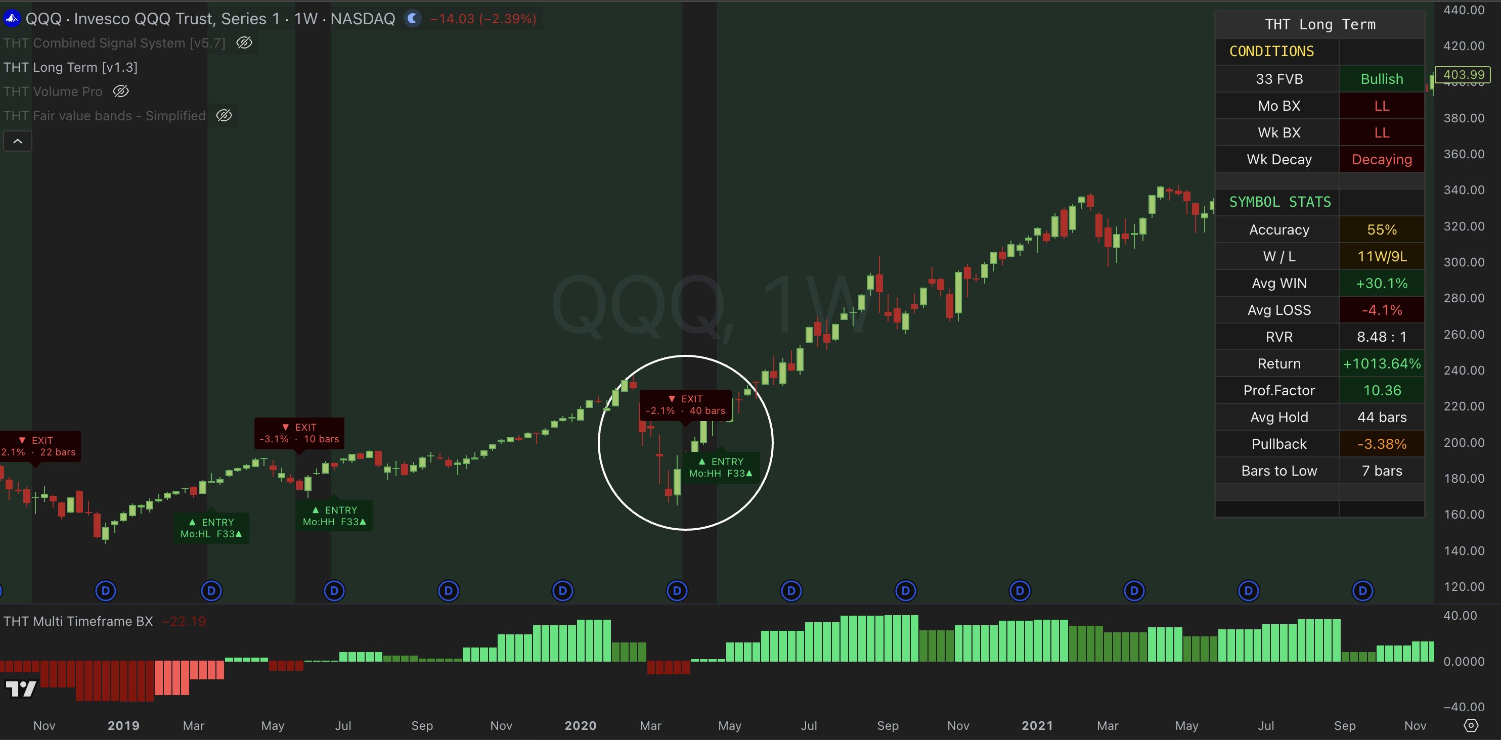 2020 would have stopped you out near the lows for about a 3% loss, then got you back in when buying pressure returned.
