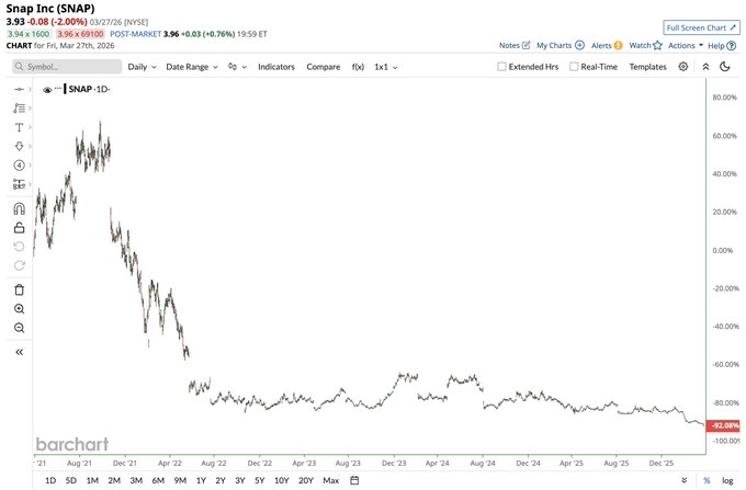 If you invested $10,000 in $SNAP exactly 5 years ago, you would have $792 today 🚨🚨 Not too bad 🫡
