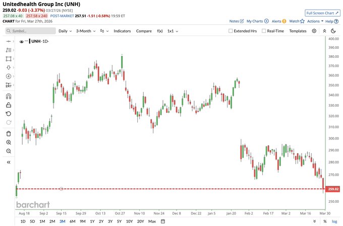 UnitedHealth $UNH has now plunged all the way back below Warren Buffett's Berkshire Hathaway 2025 purchase price 📉💸