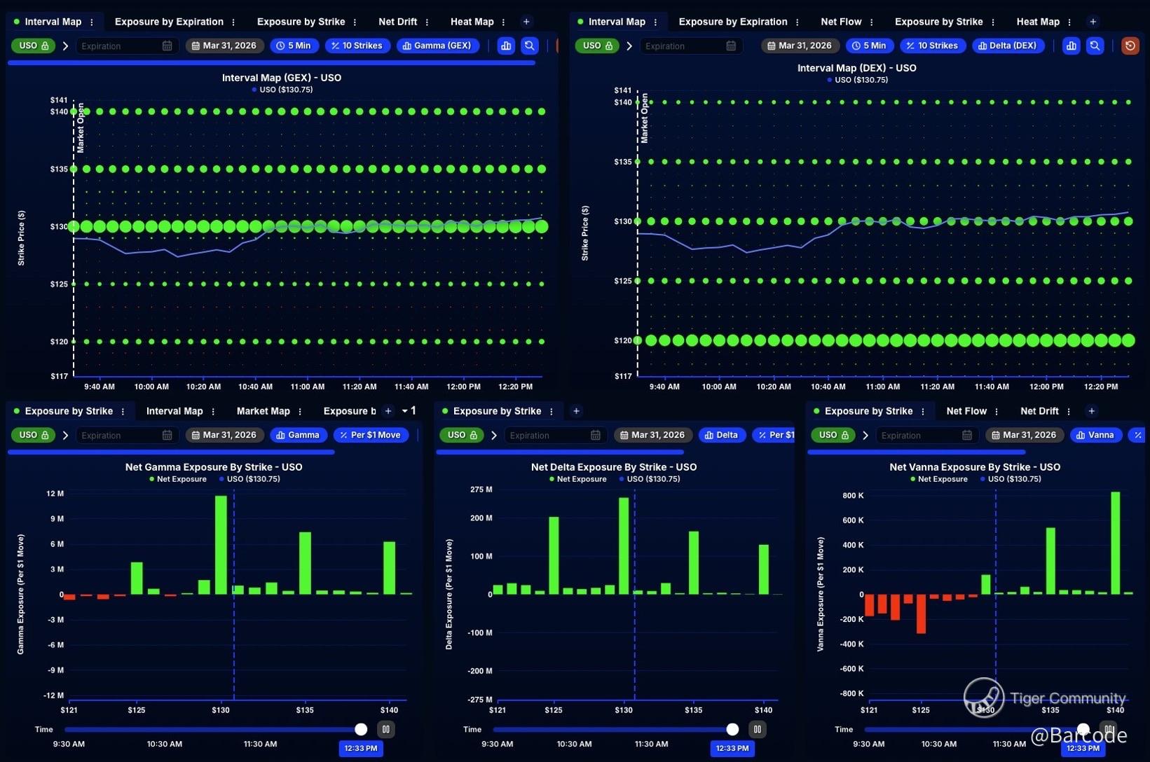 With the conflict showing early signs of de-escalation, $USO is exhibiting broad positive exposure across the options surface rather than isolated strike concentration.