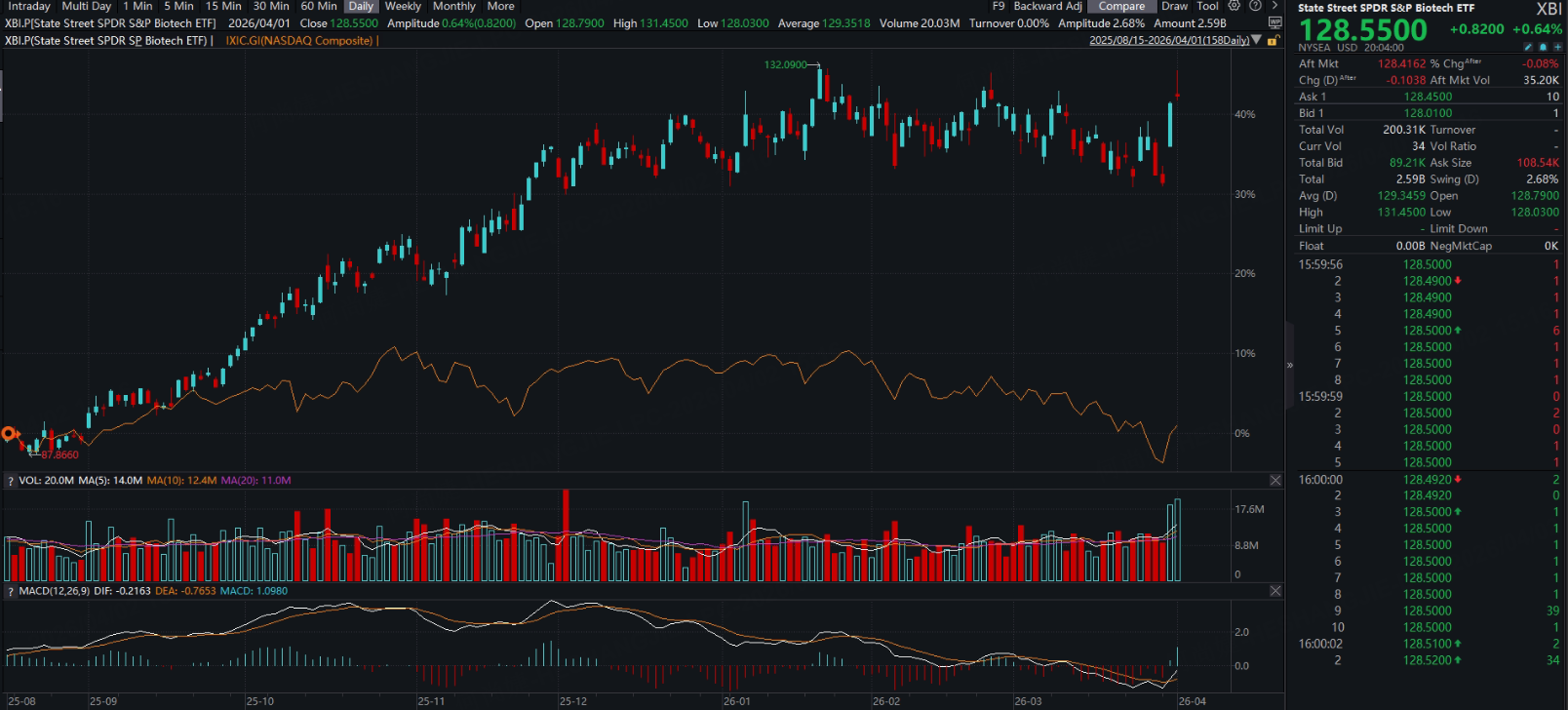 On March 31, the US and Iran signaled a potential de-escalation of conflict, leading to a clear improvement in market risk appetite. US equities broadly rallied, with the $NASDAQ(.IXIC)$ rising 3.80% on the day. Against this backdrop, the biotech sector stood out, with $Spdr S&P Biotech Etf(XBI)$ gaining 7.53%, significantly outperforming the broader market.