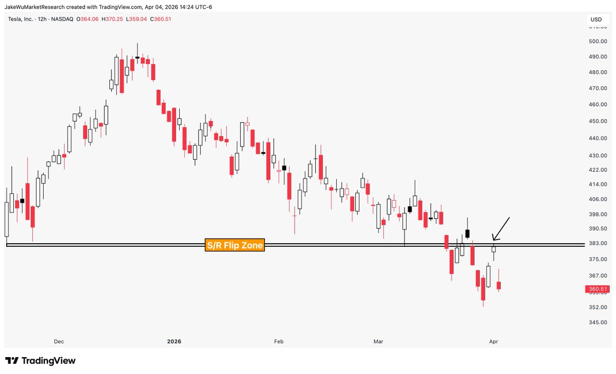 $Tesla Motors(TSLA)$Rejected hard at the S/R flip zone on Thursday.