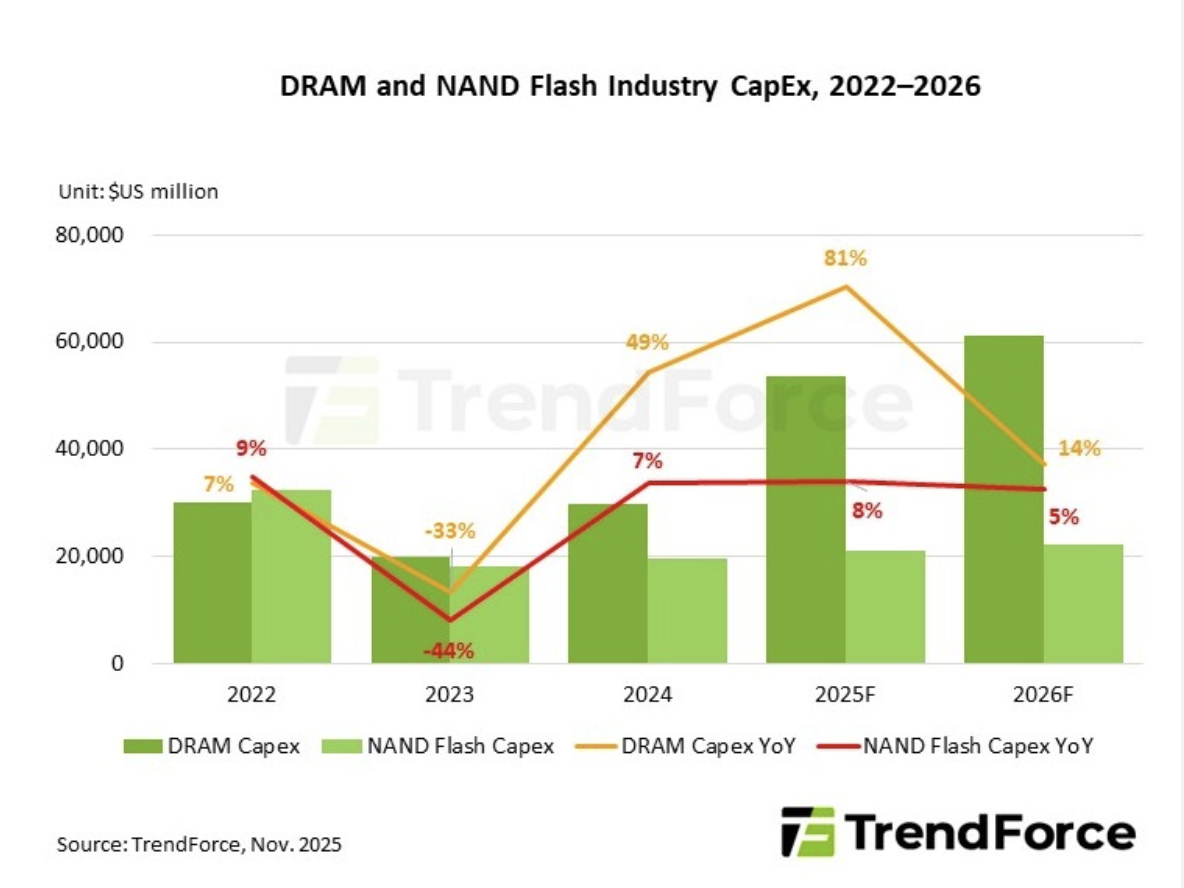 傳統需求疲軟:消費電子市場復甦緩慢,PC/手機出貨量未達預期,DRAM/NAND仍有部分用於非AI領域,導致「AI獨撐大局」的脆弱性暴露。