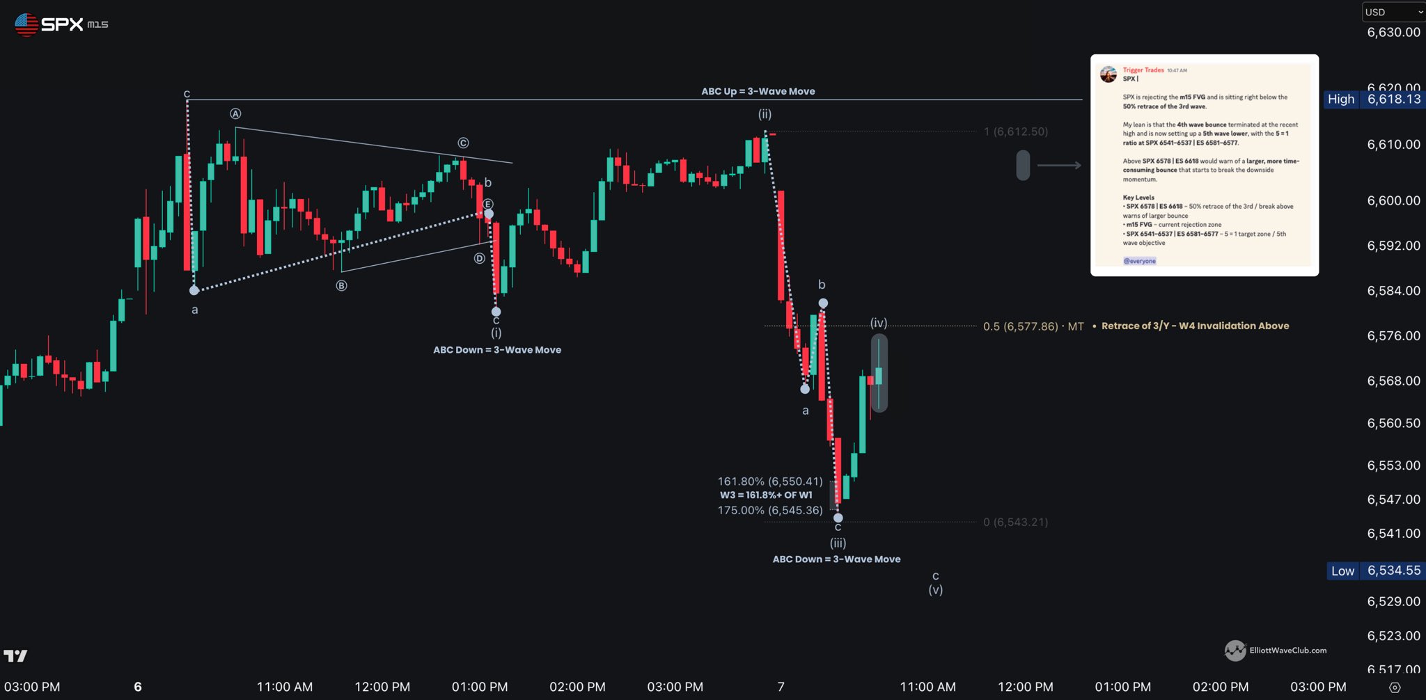 $S&P 500(.SPX)$ traced out a (3-3-3) pattern — but the 2nd leg down extended 161.8%+ of the 1st, making it likely a 3rd wave, not a Y-wave.
