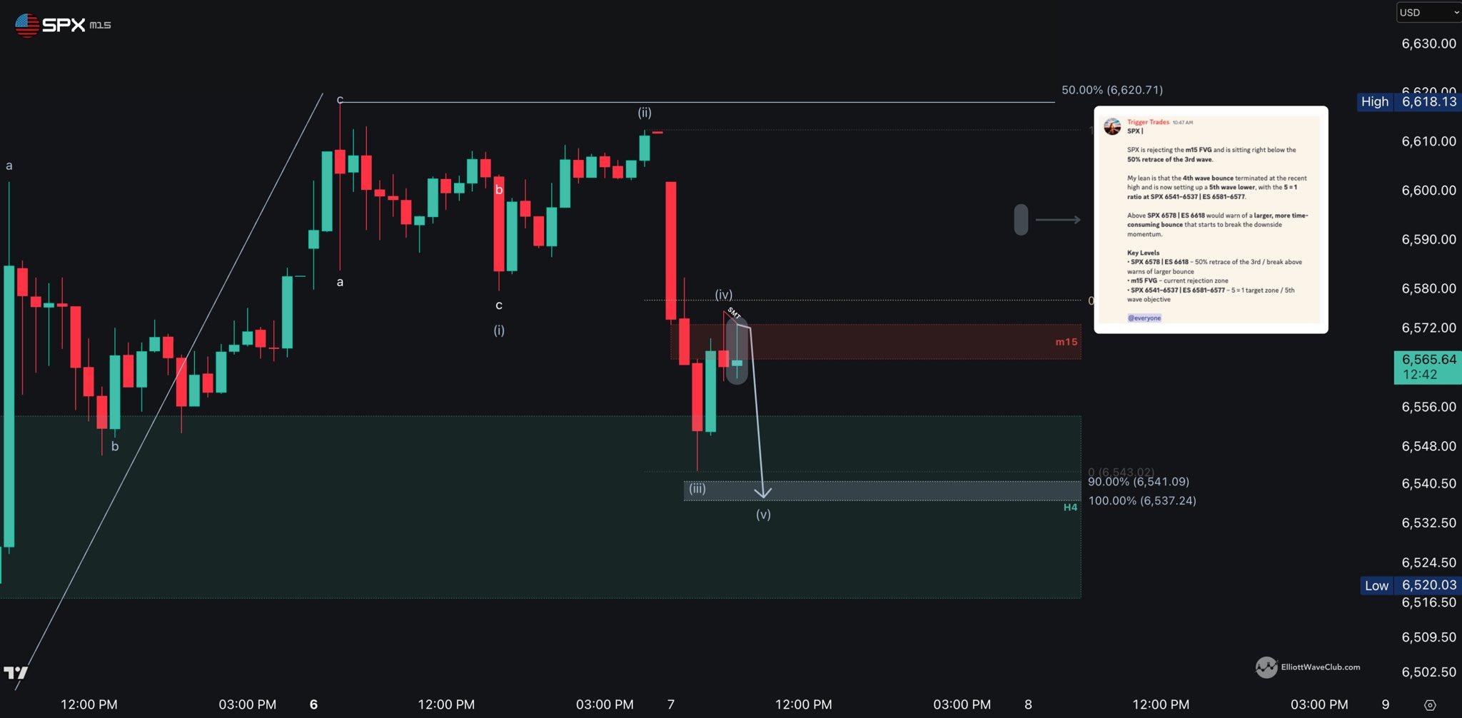 M15 FVG + bearish SMT stacked as confluence for the 4th wave.