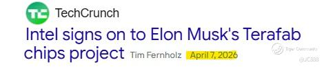 INTC will be joining Musk’s $20 to $25 billion Terafab mega AI-chip project with SpaceX, xAI, and TSLA.