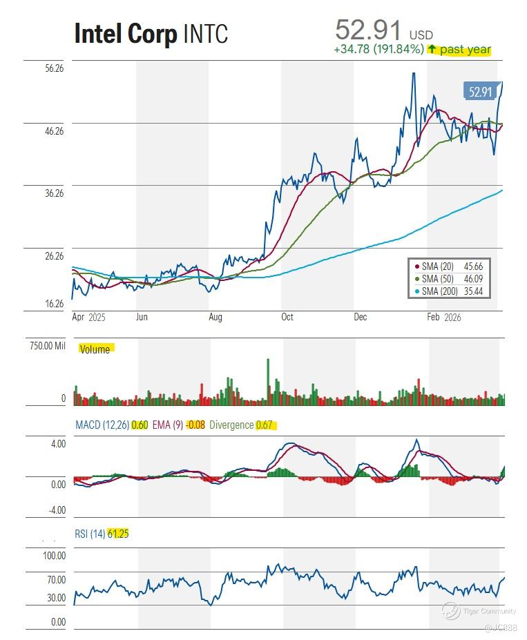 On 07 Apr 2026, INTC closed the day at $52.91 /share.