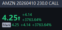 A total number of 1.41M options related to $Amazon(AMZN)$ were traded on Thursday, up 52% from the previous trading day, of which call options accounted for 69%. Particularly high volume was seen for the $230 strike call option expiring Apr. 10 with 74,370 contracts trading. $AMZN 20260410 230.0 CALL$