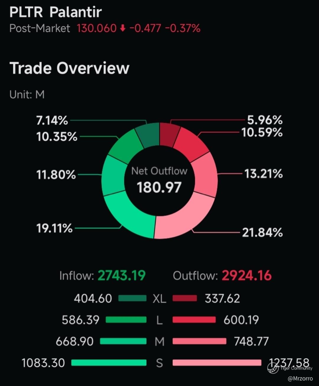 But it wasn't just the short sellers who have pushed the stock lower. Palantir has seen outflows in 10 of the past 11 months and Thursday's data signals that's not about to end. Outflows outpaced inflows by $181 million, driven by small orders, indicating that retail investors were unloading the stock.