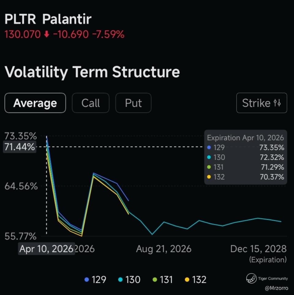 Open interest, or the tally of outstanding put options stood at 1.76 million contracts, bigger than the 1.69 million outstanding call options, according to exchange data tracked. The term structure is severely inverted, with the implied volatility for contracts expiring April 10 spiking above 70% before collapsing toward 58% next week, then popping again into May. That could be seen by some as a sign of panic hedging.