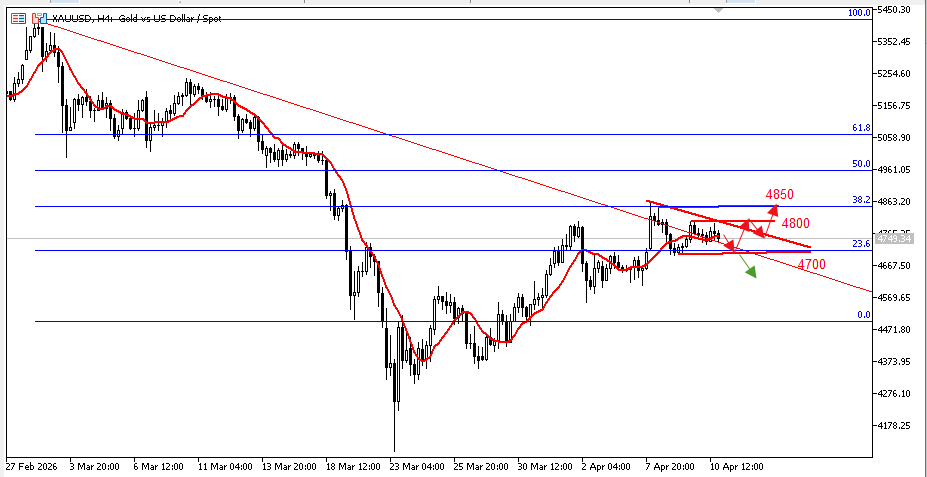 4800 USD is the current watershed between upward and downward movements: a valid breakout confirms the extension of the 5-wave pattern, targeting 4900-5000 USD; failure to hold above this level suggests a potential head and shoulders pattern in the short term, putting continued downward pressure on gold prices.