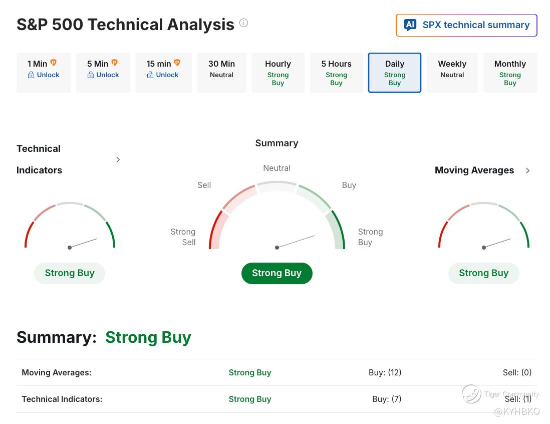 The technical analysis of the S&P 500, based on daily intervals, reveals a highly favourable outlook for the index. Out of a total of 20 indicators reviewed, 19 are signalling a “buy” rating, while just one suggests a “sell” rating. This strong majority of buy recommendations indicates robust positive sentiment and positions the S&P 500 as a “strong buy” for the upcoming week.