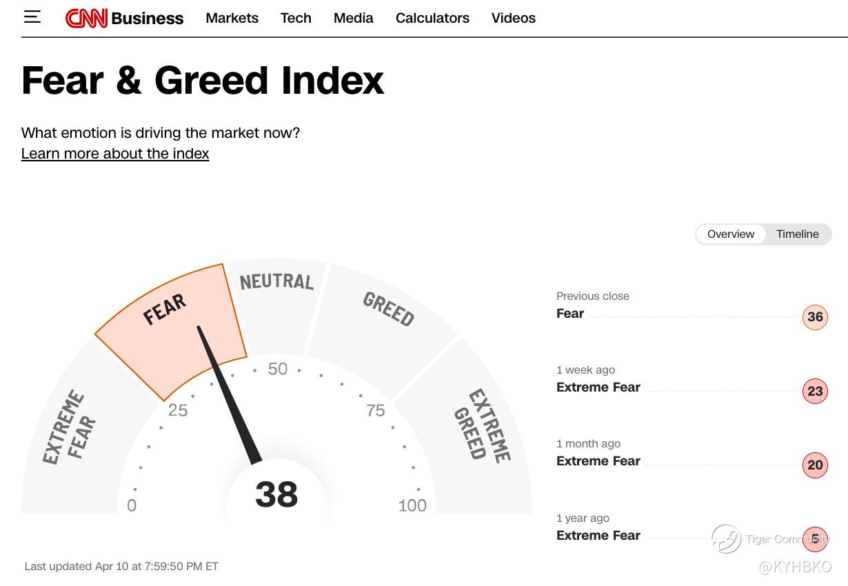 The market sentiment remains in the “Fear” zone with a score of 38. While it is an improvement from last week’s score of 15, the market continues to reflect a “fearful” sentiment.
