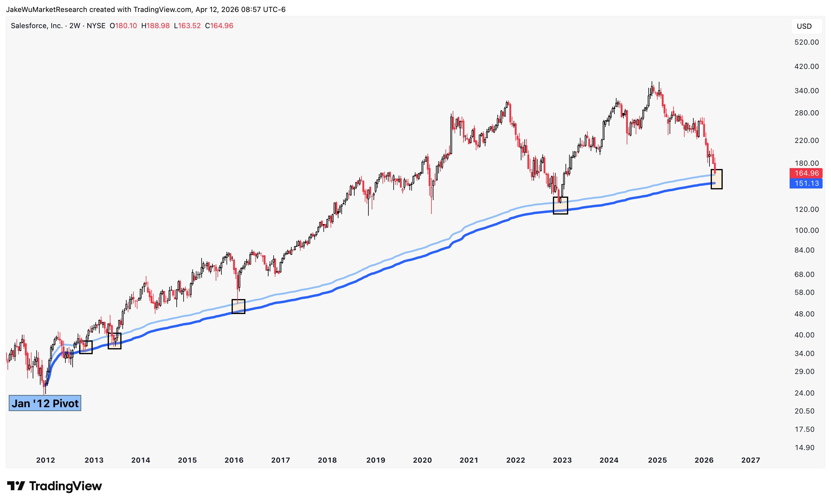 $Salesforce.com(CRM)$ The January 2012 anchored VWAP zone has been a bounce spot over the last 10+ years.