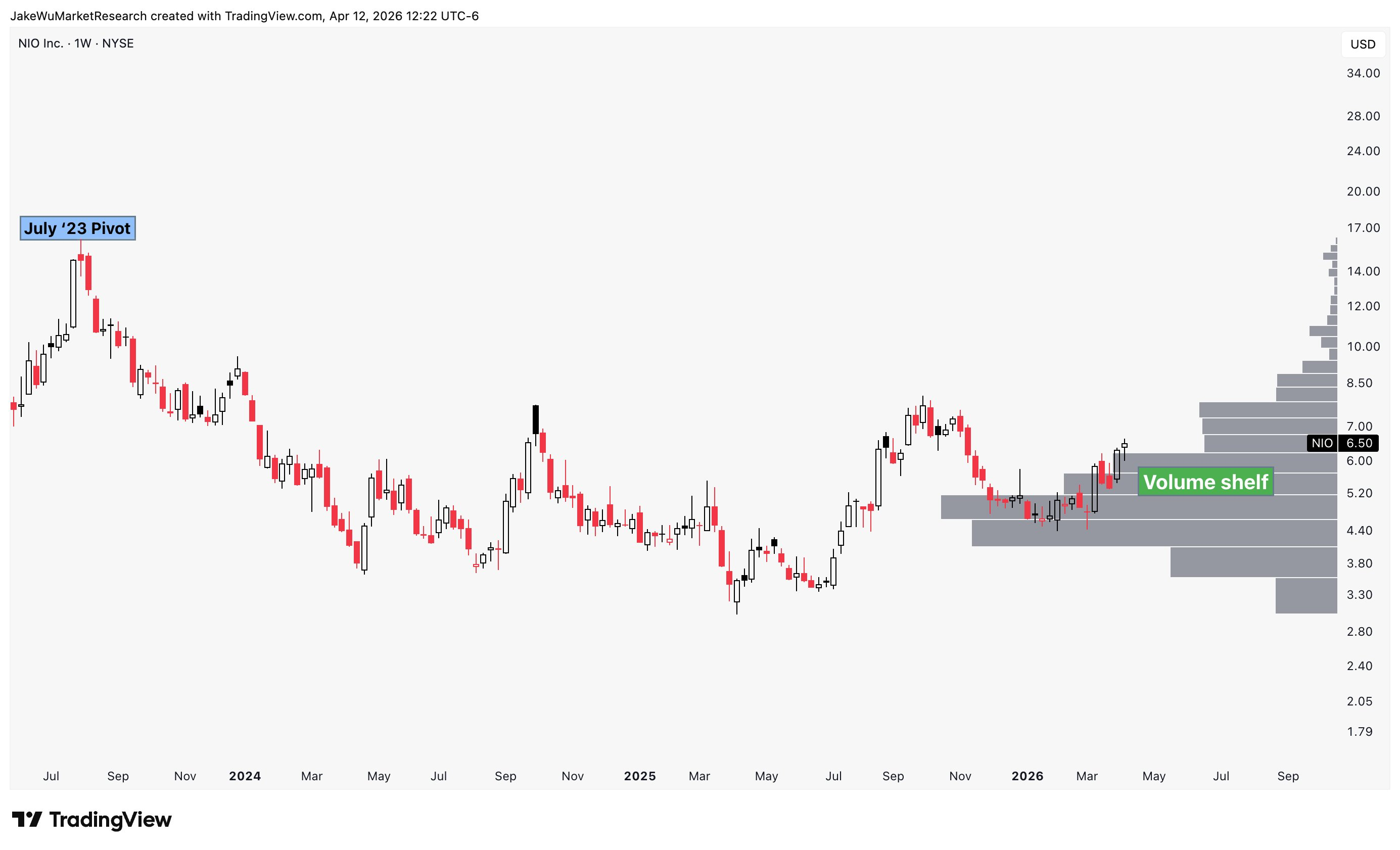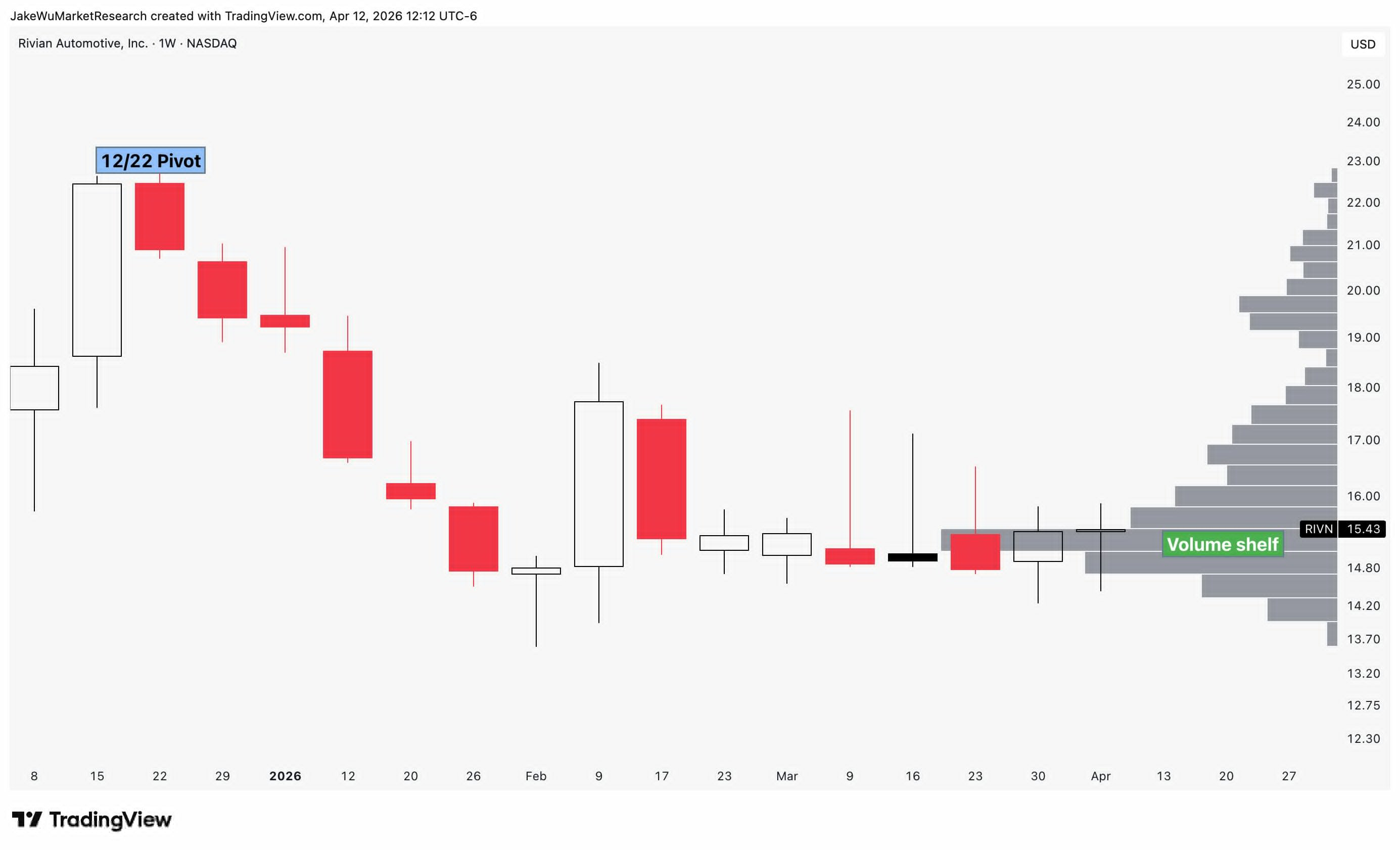 $Rivian Automotive, Inc.(RIVN)$Volume shelf setup on the weekly candle chart.