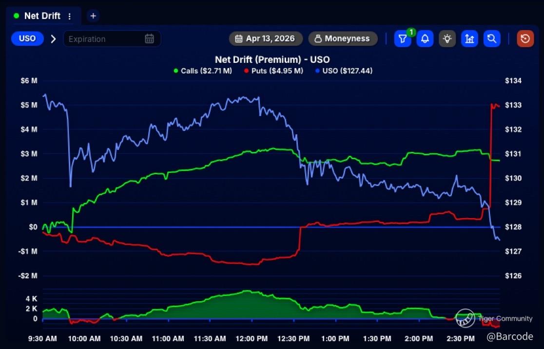 A $5M+ surge in single-leg β€90DTE puts on $USO just hit the tape, and this is not passive hedging. This is deliberate short-term positioning, signalling conviction around near-term mean reversion following the geopolitical premium embedded in recent price action.