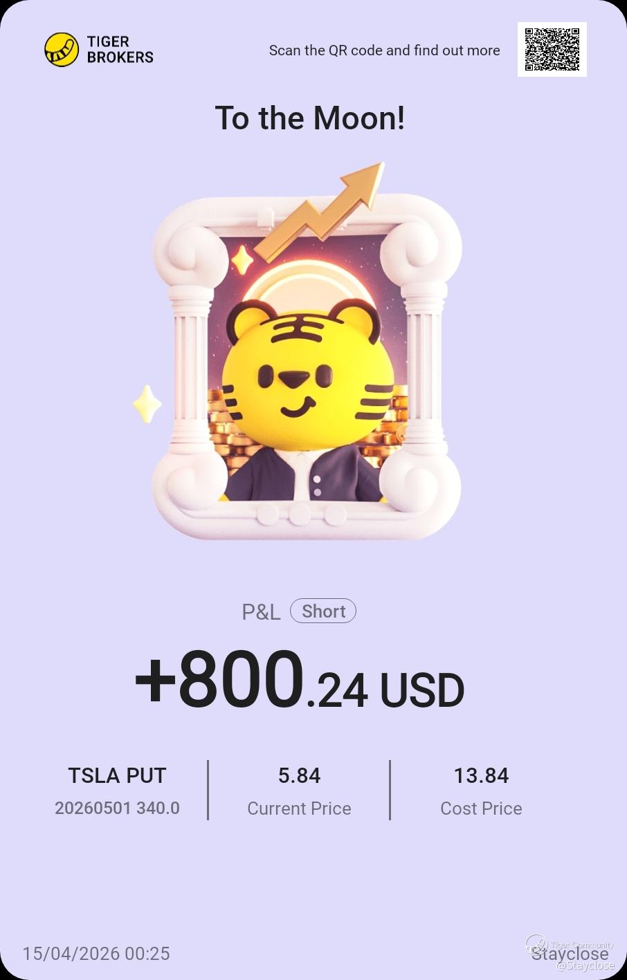 $TSLA 20260501 340.0 PUT$ $Tesla Motors(TSLA)$
