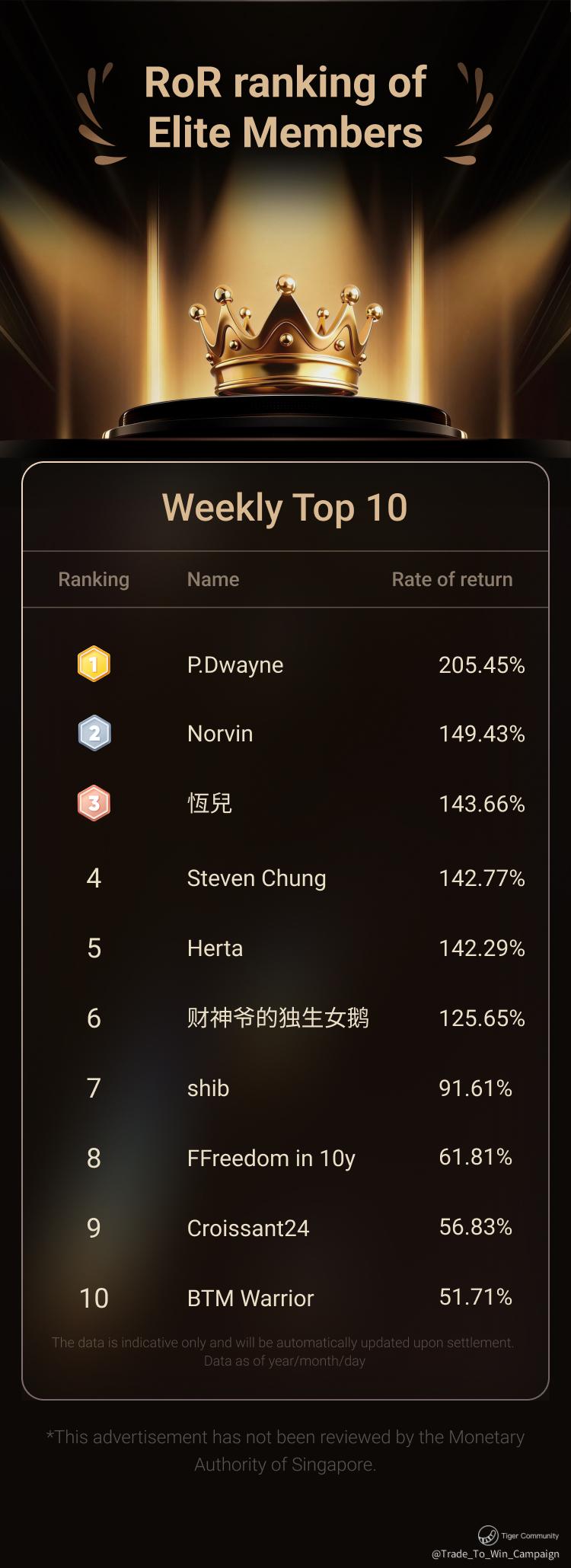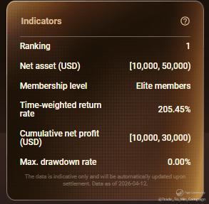P.Dwayne delivered a near-“perfect” performance with a 205.45% return and 0.00% maximum drawdown—heavy positions, precision, and one-shot kills;