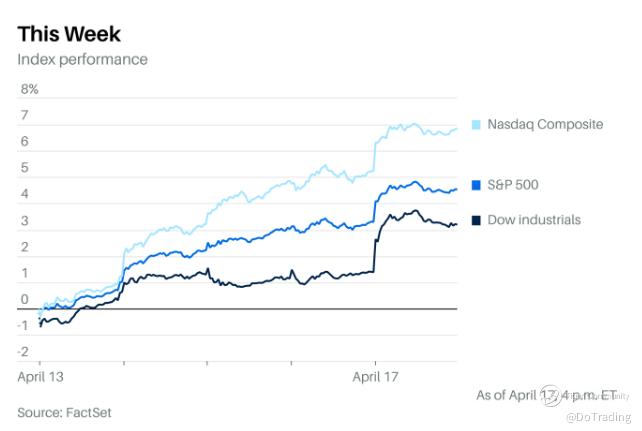 The $S&P 500(.SPX)$ also reached record levels, gaining 4.5% for the week, while the Dow Jones Industrial Average jumped 1,531 points, or 3.2%.