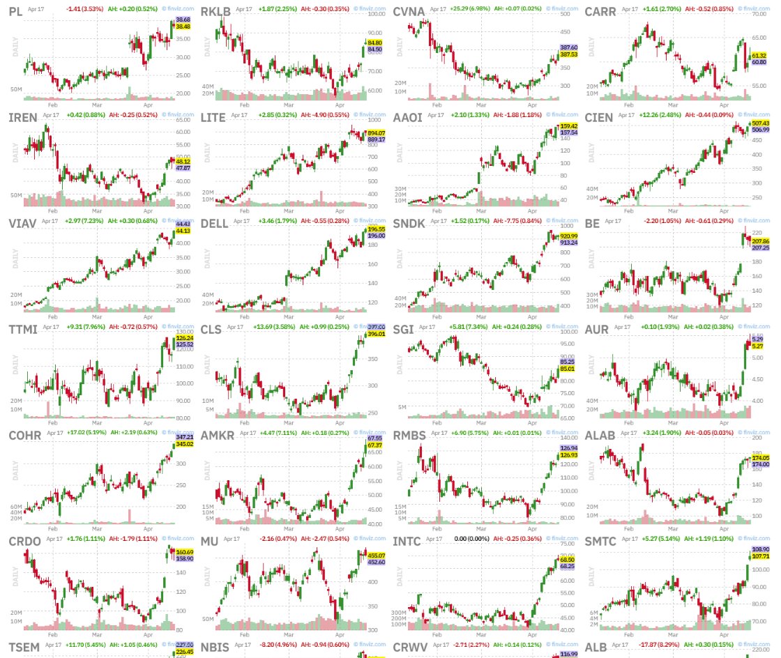 Momentum is clustering in AI supply chain, semiconductors, and infrastructure, with high-ADR names leading as capital rotates into volatility and strength.