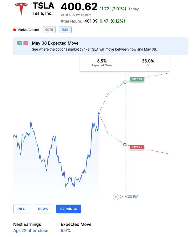 This can't be correct ... $Tesla Motors(TSLA)$ is expected to have only a ~6% move for earnings ???