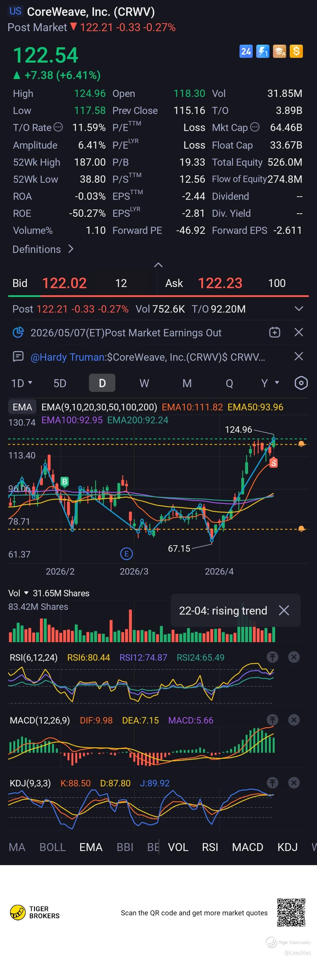 $CoreWeave, Inc.(CRWV)$ Selling this morning to lock in my 10% as the greed starts rising. Am likely to regret it as I sold $ARM 2 days before last night's rally. I am taking profits and cutting some of my losses too.