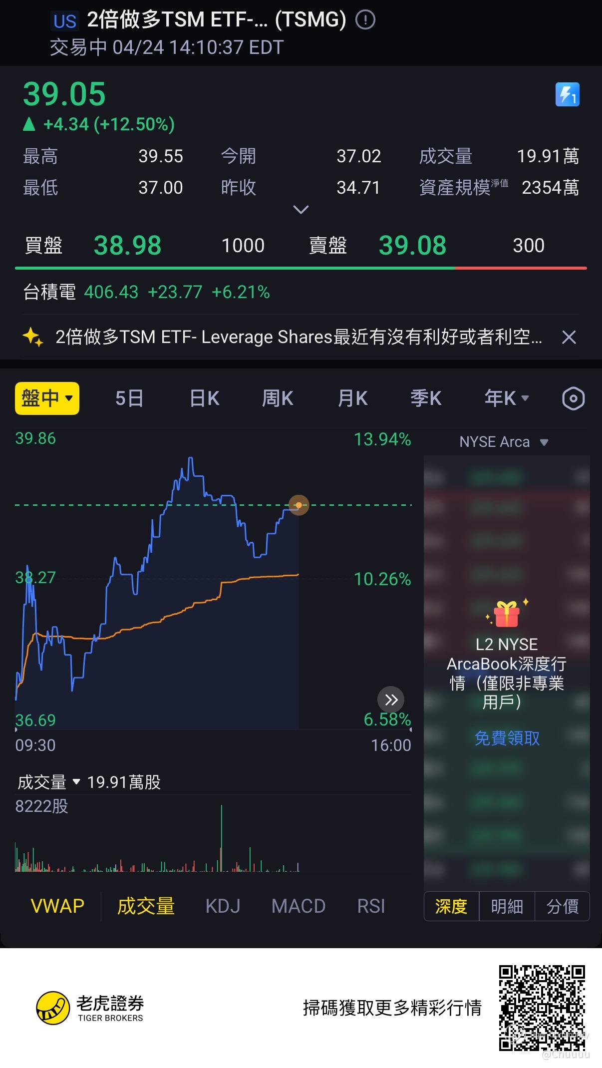 $2倍做多TSM ETF- Leverage Shares(TSMG)$ Tsm gogogo