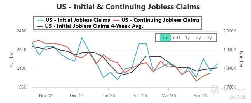 Thu, 23 Apr 2026 - US jobless claims - weekly and continuing.
