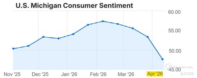 Latest April 2026’s reading has reached a historical low, surpassing the gloom of 2008 financial crisis and 1970s stagflation era.