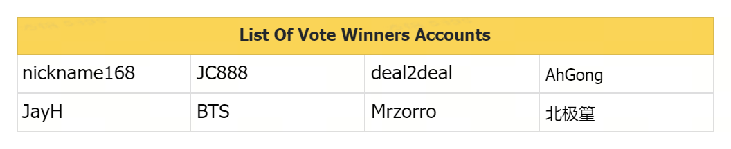 Yesterday's winners: