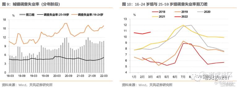 當然從數據結構上來看,還不是最差的數據,意味着市場底的數據還沒有出現,因爲國內就業數據具有周期性特徵,一般是秋招時分,按照歷史慣性,大學畢業季,會將季度性失業率往上擡0.3-1%···