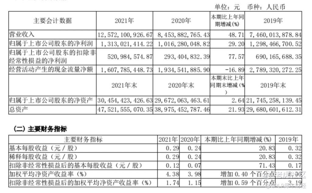 近期,三安光電(600703.SH)發佈年報顯示,2021年營業收入爲125.72億元,同比增加48.71%;歸屬於上市公司股東的淨利潤爲13.13億元,同比增加29.20%;基本每股收益爲0.29元/股,同比增加20.83%;擬每10股派發現金紅利1元(含稅)、不轉增。