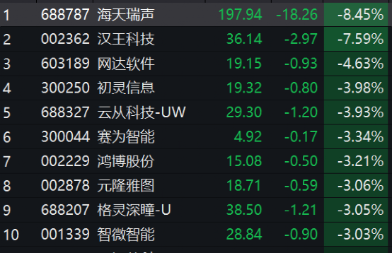 除了浪潮信息和漢王科技,今日上午海天瑞聲、雲從科技、初靈信息等熱門概念股均出現大跌。