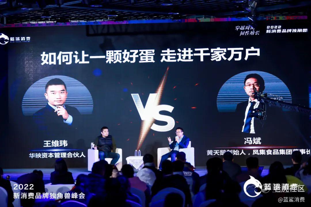峯會現場,華映資本管理合夥人王維瑋與黃天鵝創始人、鳳集食品集團董事長馮斌以《如何讓一顆好蛋走進千家萬戶?》爲主題展開對談,分別就如何定義一顆好雞蛋、如何規模化生產好雞蛋、如何讓好雞蛋被更多消費者瞭解併購買等話題進行深度探討。