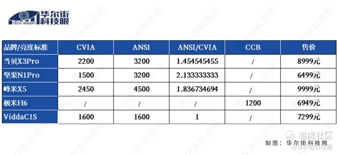 有行業人士指出,CVIA流明比起ANSI流明在測試方法上增加了諸如色溫、色座標等約束調節,但對實際測試亮度數值影響不大,即使考慮到極限情況,兩者實測亮度數值一般也不會超過20%。也就是說,實測的ANSI流明和CVIA流明數值最多隻會存在20%的差異。但上述品牌的參數對比,明顯偏離了這一數值。