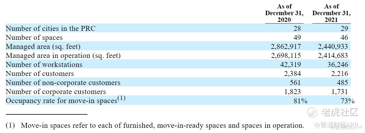從運營指標上看,由於疫情的影響,2021年築夢之星的大部分指標均呈下滑趨勢,除覆蓋城市數量增加1個外,辦公空間下降3個至46,工位數量下降14%至36246個,客戶數量下降7%至2216個,出租率從81%下滑至73%。