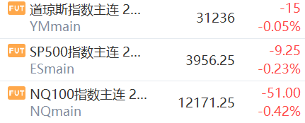 9月14日,美股股指期貨下跌,道指期貨跌0.05%,標普500指數跌0.23%,納指期貨跌0.42%。